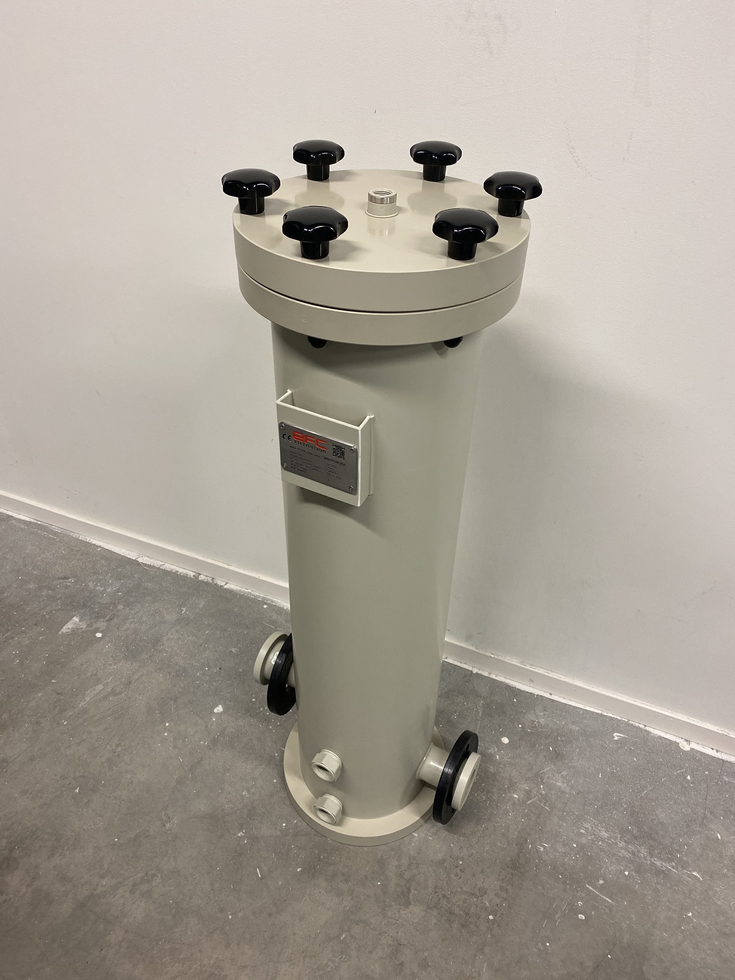 Filterhuis van polypropyleen Op de foto is een filterhuis van polypropyleen te zien. Dit filterhuis is uitermate geschikt voor brackish water (= water met een hoge zout-concentratie). Wij hebben samen met de klant zijn proces geanalyseerd en hebben naar aanleiding daarvan dit filterhuis kunnen produceren van hoogwaardig materiaal in plaats van een metalen filterhuis. Door mee te denken met onze klant hebben wij deze keer niet alleen middels onze filterelementen maar ook met onze hardware-oplossing de total cost of ownership van onze klant kunnen verlagen. Wilt u ook weten wat wij voor u kunnen beteken? Neem dan contact met ons op. |